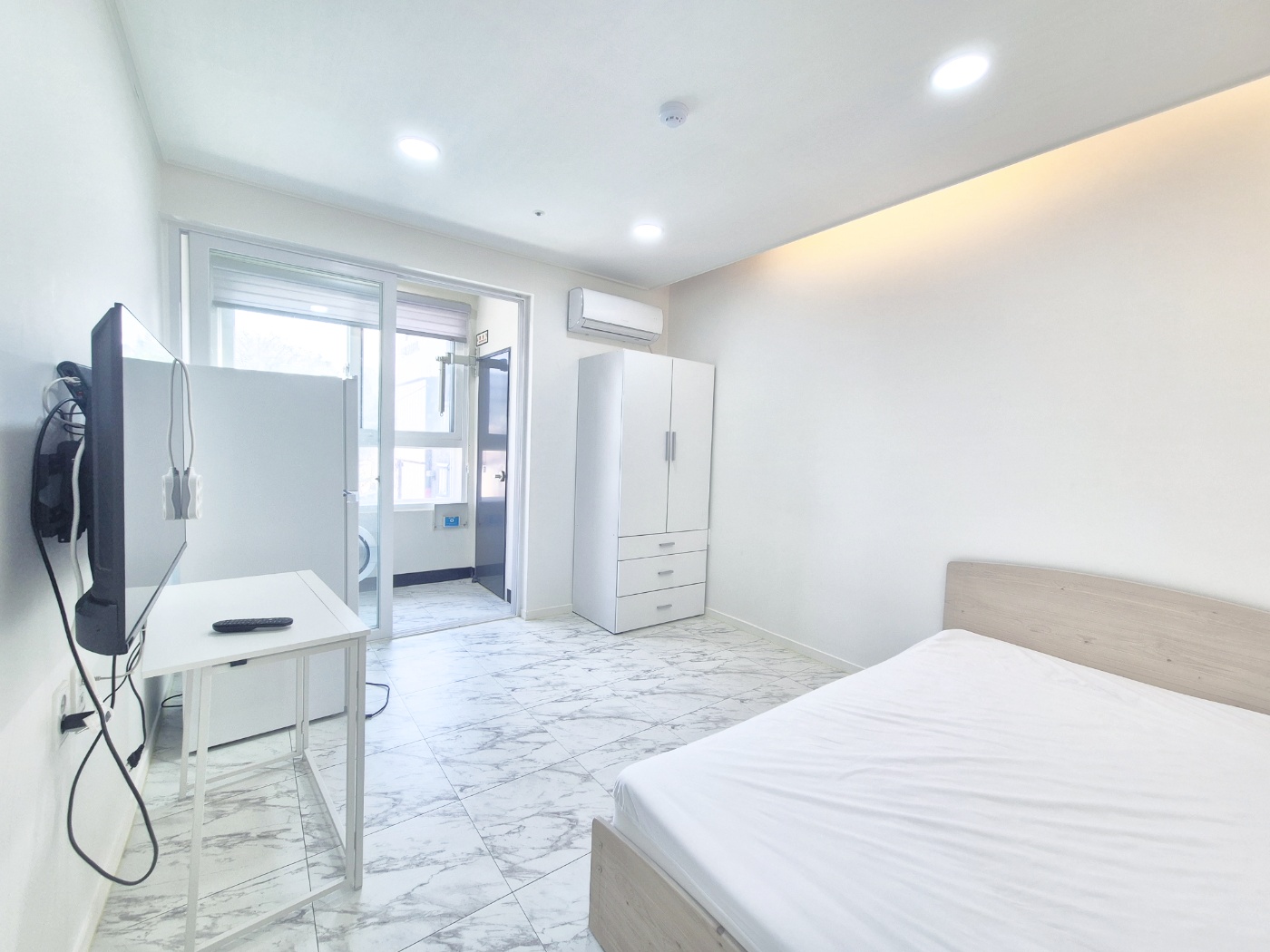 ◑ 분리형 주방이며 화이트톤입니다
