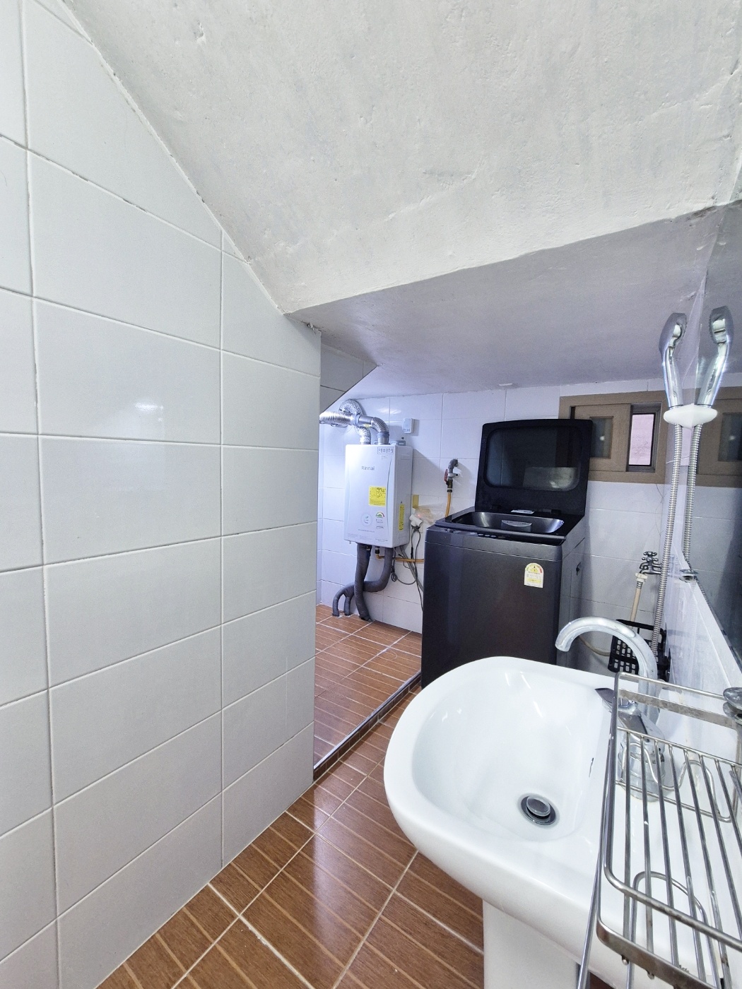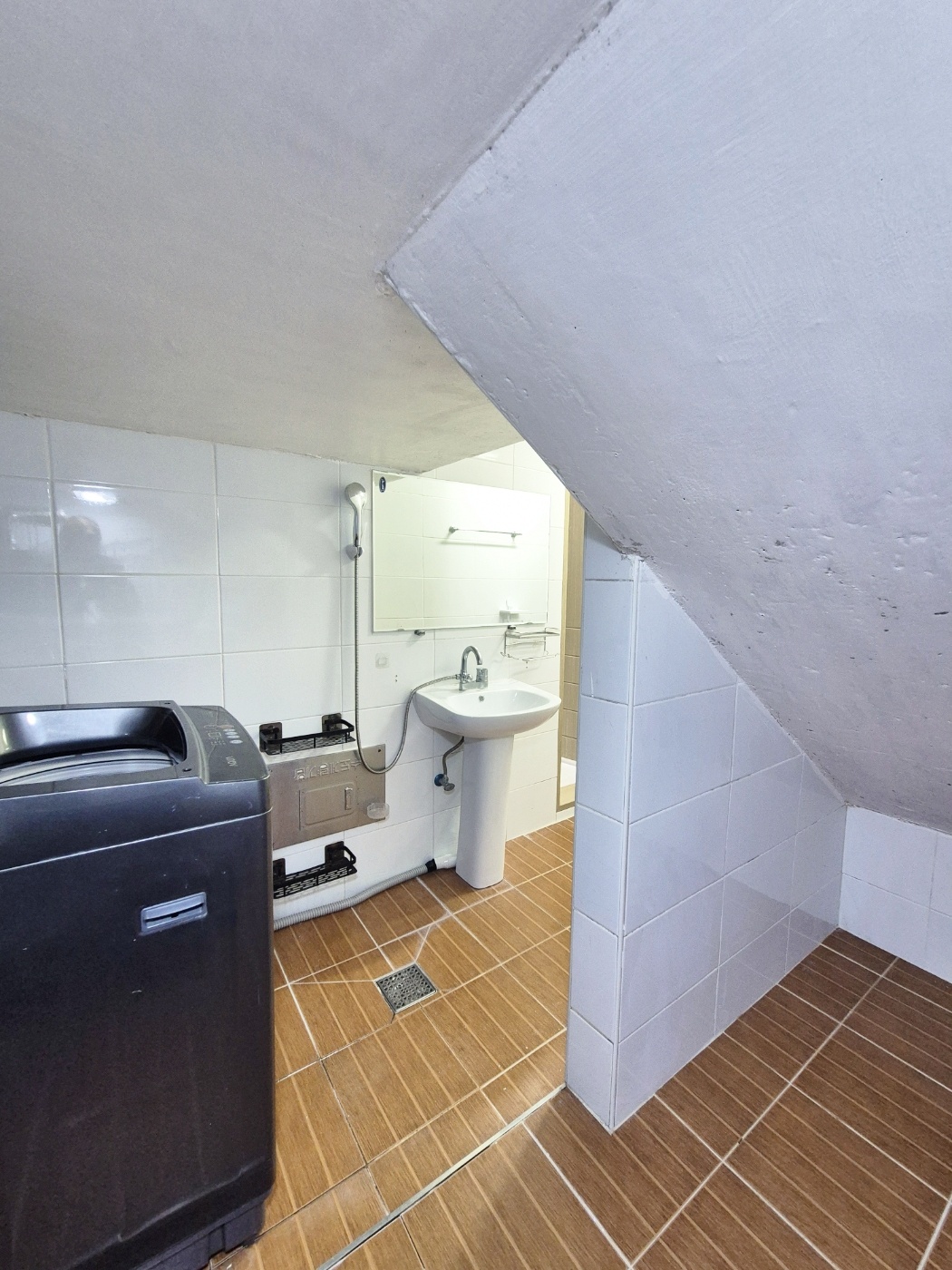 ◑ 화장실 길게 일자형이라 세탁기 있고 그안에 창고처럼 공간있어요